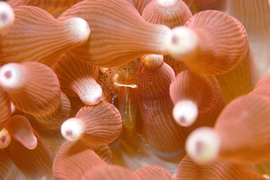 カザリイソギンチャクエビ。かなり奥にいたのできびし〜い!